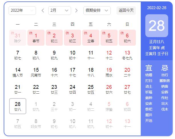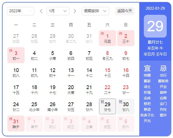 2022年春节放假时间安排